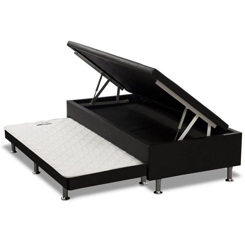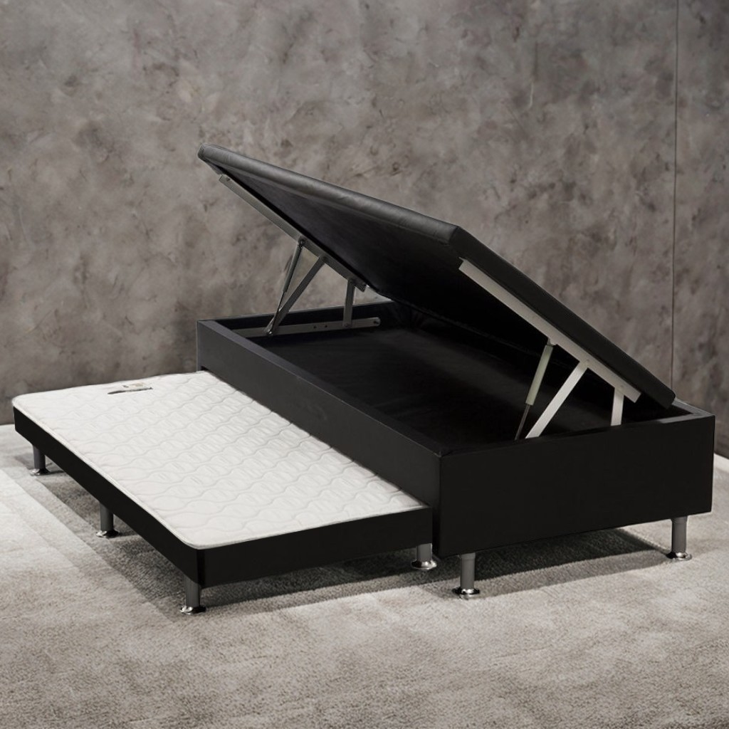 Base Box Solteiro Baú com Auxiliar Corino Preto – ALTO NÍVEL CAMAS E COLCHÕES