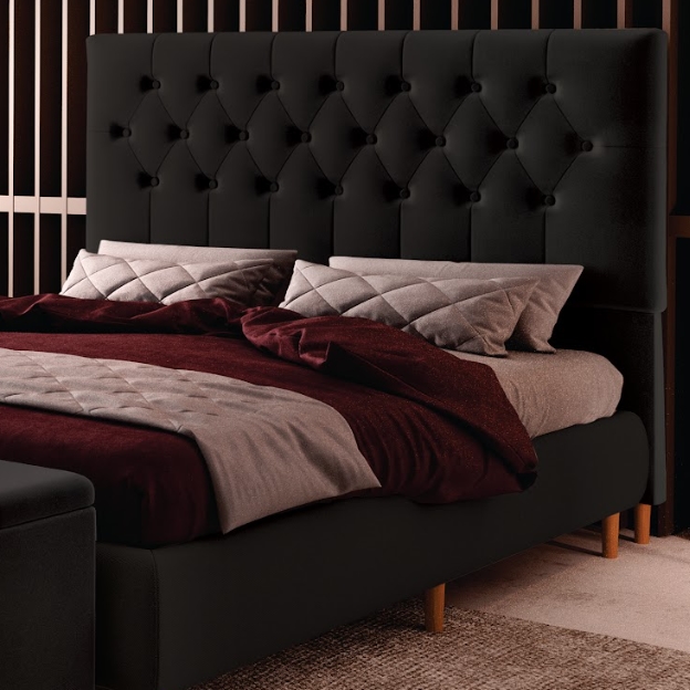 Cabeceira Casal Turim Veludo Preto B013 – LARMÓVEIS/TREVO ESTOFADOS