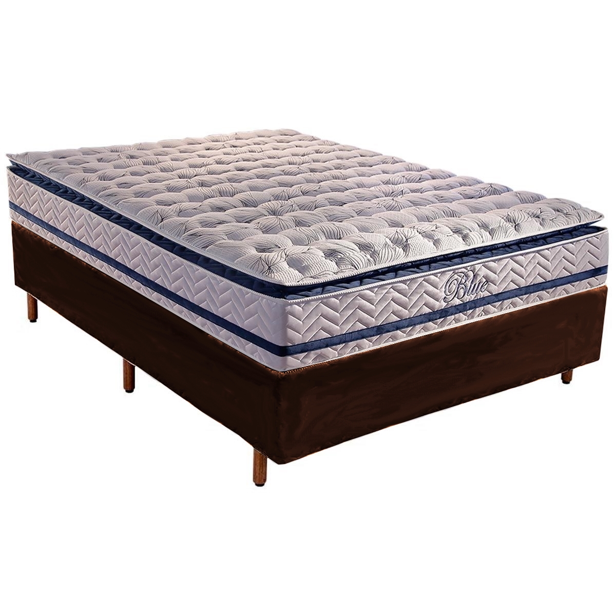 Colchão Casal Blue D33 + Base Box Simples Corino Marrom – PAROPAS/ALTO NÍVEL CAMAS E COLCHÕES