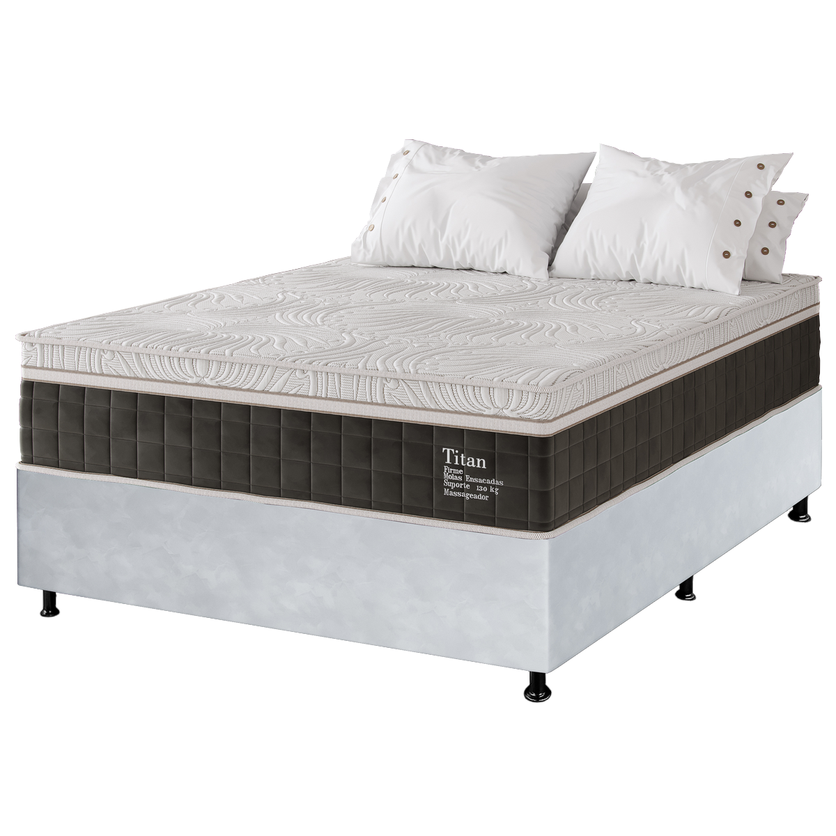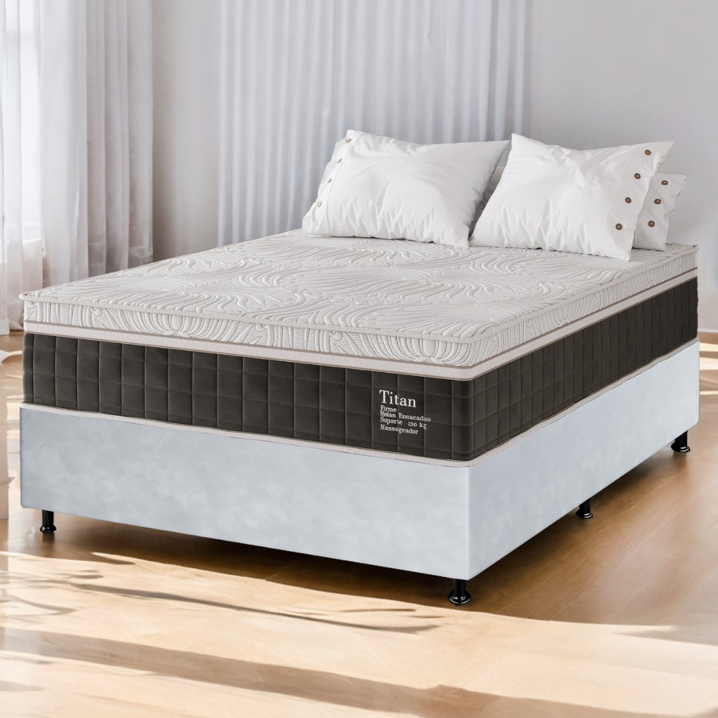 Colchão Casal Terapêutico Massageador Titan D28 + Base Box Simples Corino Branco – VIERO MÓVEIS + BIOSTAR