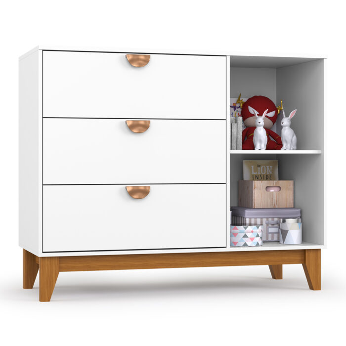 Cômoda 3 Gavetas com Porta + Berço Americano Magia Branco – BATROL MÓVEIS