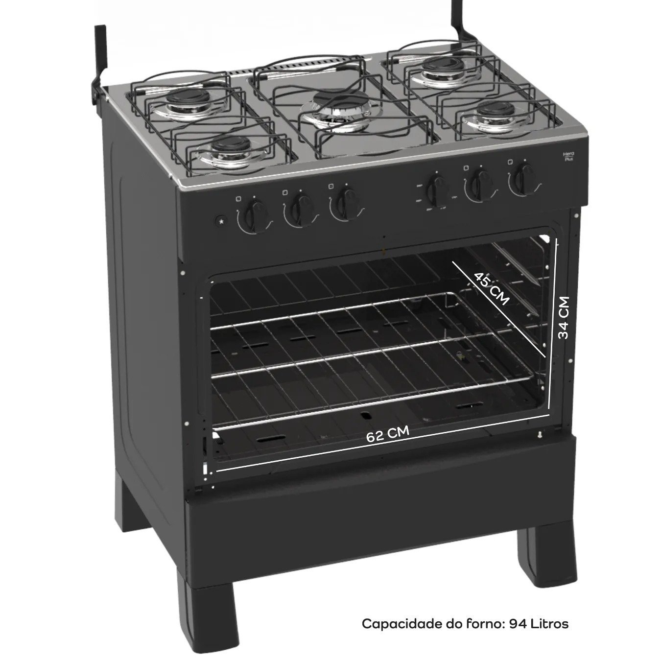 Fogão 5 Queimadores Hera Plus Preto – REALCE ELETRODOMÉSTICOS