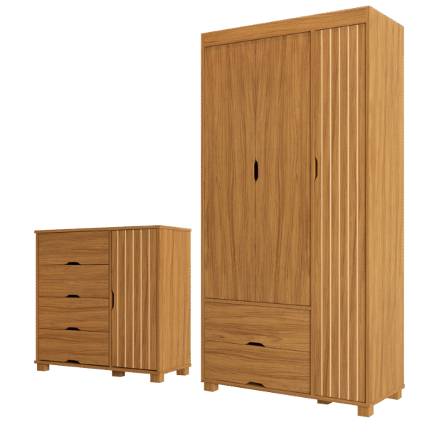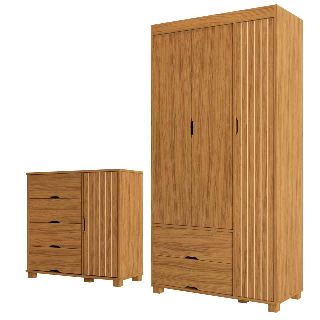 Guarda-Roupa 3 Portas + Cômoda 4 Gavetas com Sapateira Bela