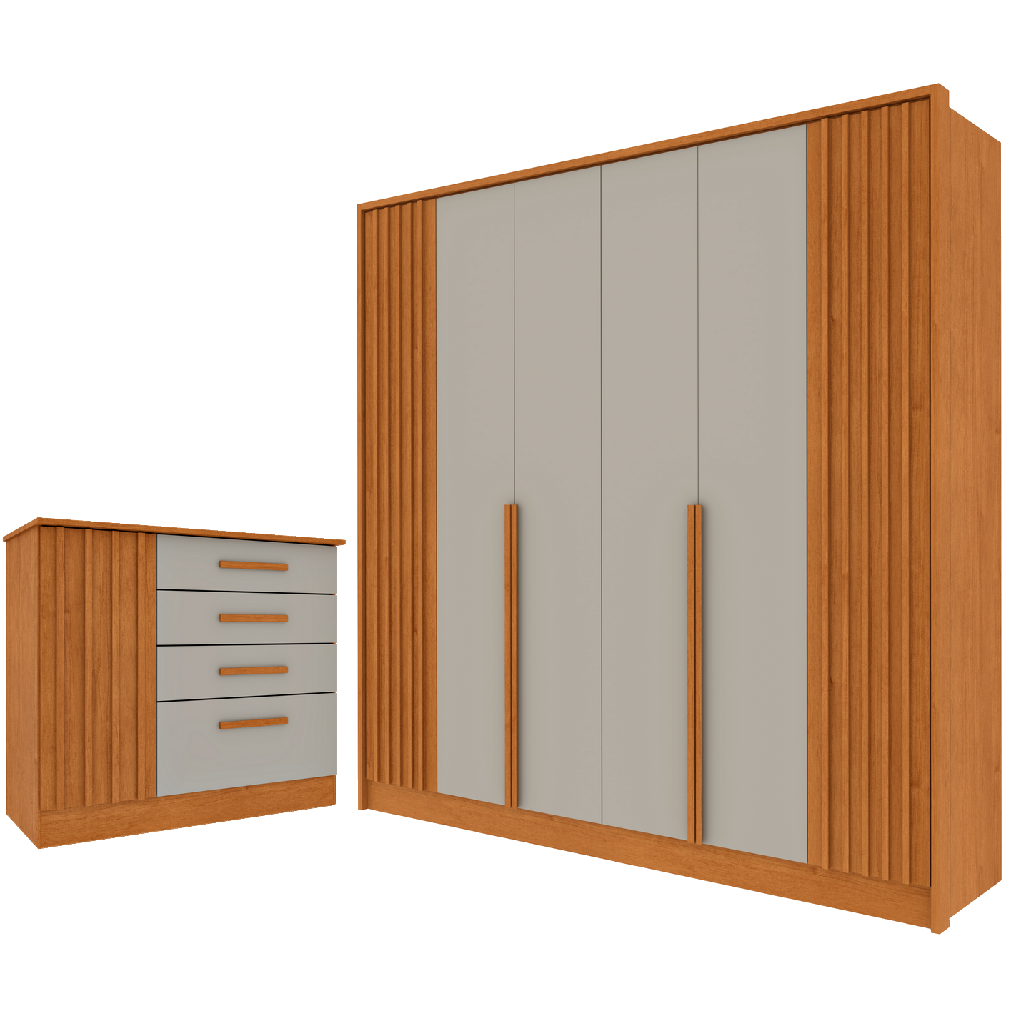 Guarda-Roupa 6 Portas + Cômoda Guarani Ripado Cinamono/Off White – TCIL