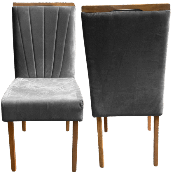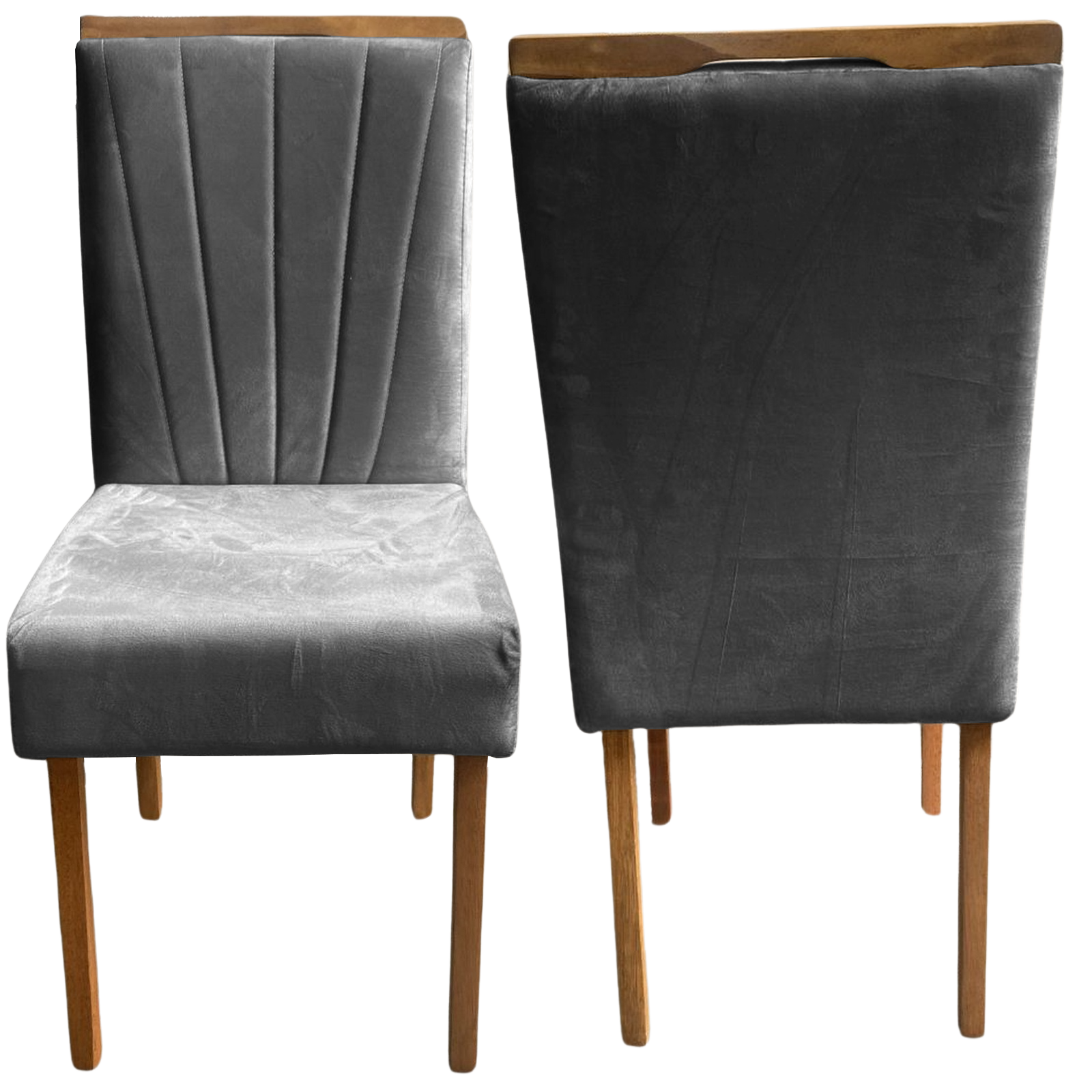 Kit 2 Cadeiras Patrícia 01 Imbuia Mel/Veludo Cinza Grafite 406 – CARVALHO DECOR