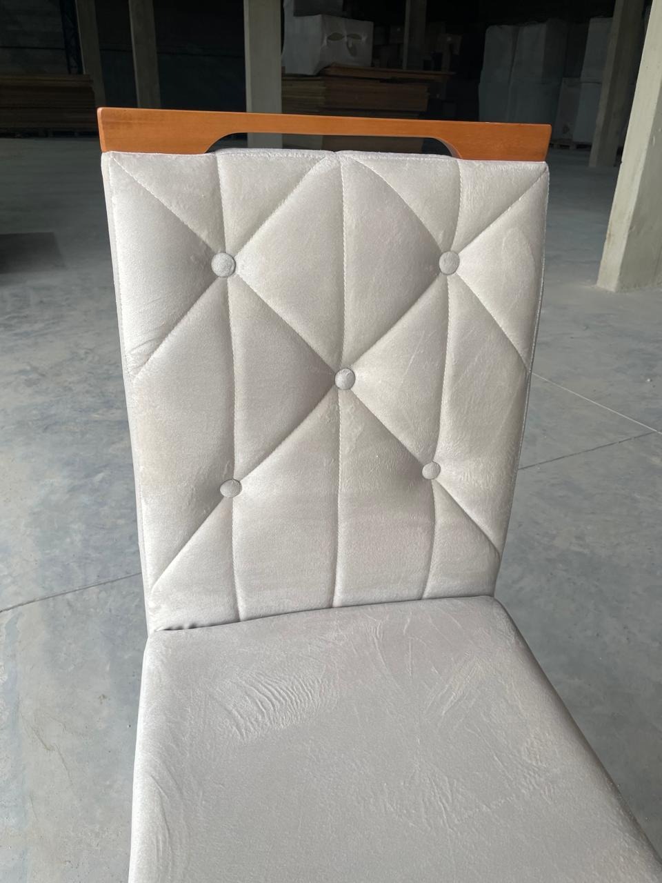 – Assento e encosto em veludo bege