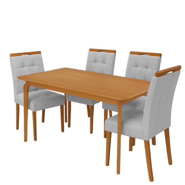 Mesa Alegra 120 Cinamomo com 4 Cadeiras Sophia Linho Cinza Prata 206 – JCM MOVELARIA + WM DECOR
