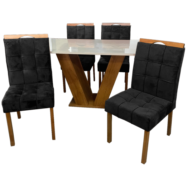 Mesa Classic 120 Cinamomo/Off White com 4 Cadeiras Sophia Mel/Veludo Preto – CEL MÓVEIS + WM DECOR