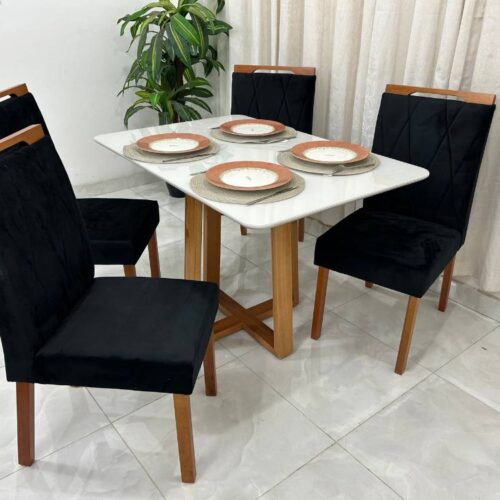Mesa de Jantar Bali 0.90×0.90 Com 4 Cadeiras Isa – Cinamomo/Off White/Preta