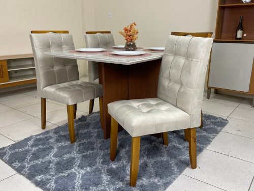 Mesa de Jantar Helo 1.20×0.90 Com 4 Cadeiras Londres – Mel/Off White/Capuccino