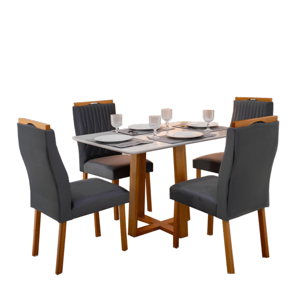 Mesa Pedro 120 Mel/Off White com 4 Cadeiras Gênova Veludo Grafite – ART ASSENTOS