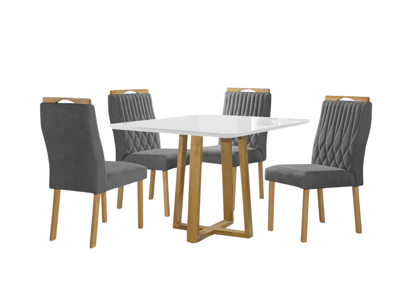 Mesa Pedro 90 Mel/Off White com 4 Cadeiras Gênova Veludo Grafite – ART ASSENTOS