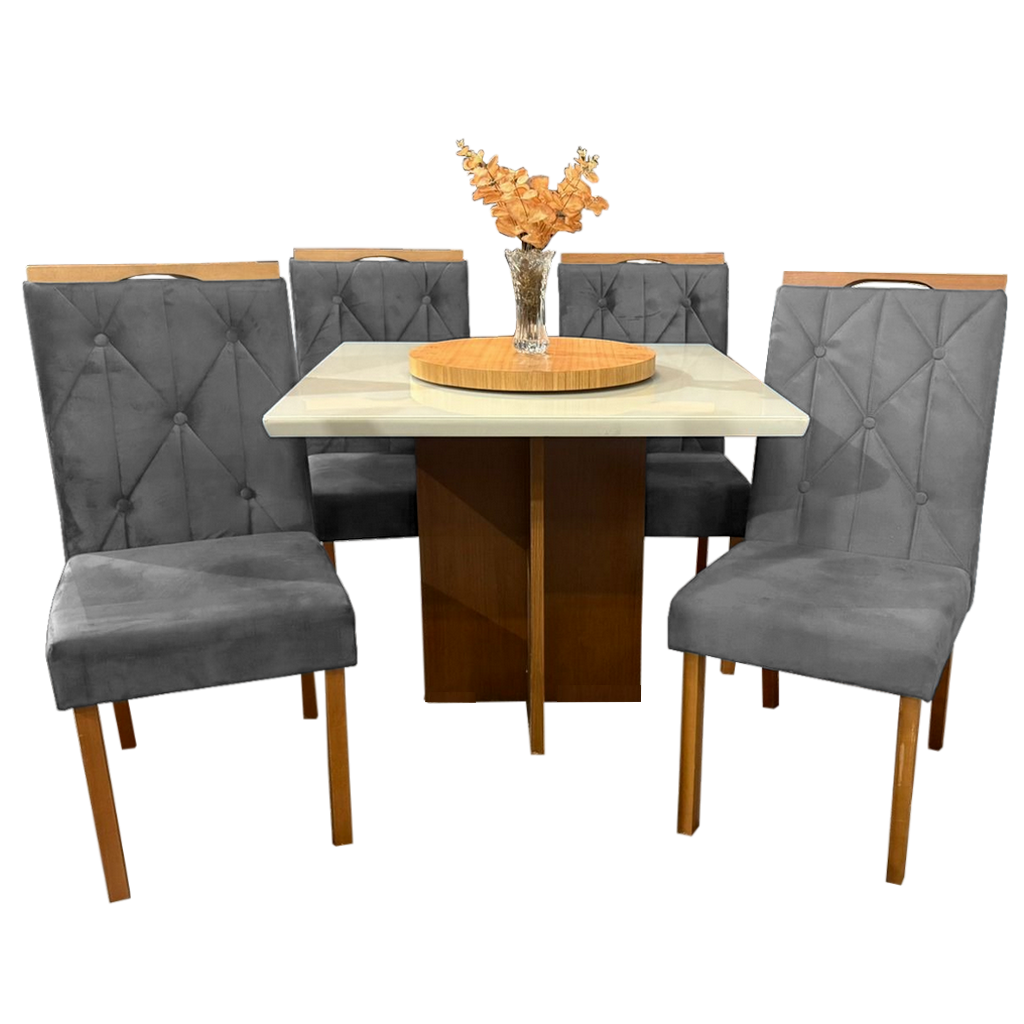Mesa Salinas 90 Cinamomo/Off White com 4 Cadeiras Yasmim Veludo Cinza Grafite – AVALON DECOR + KM DECOR