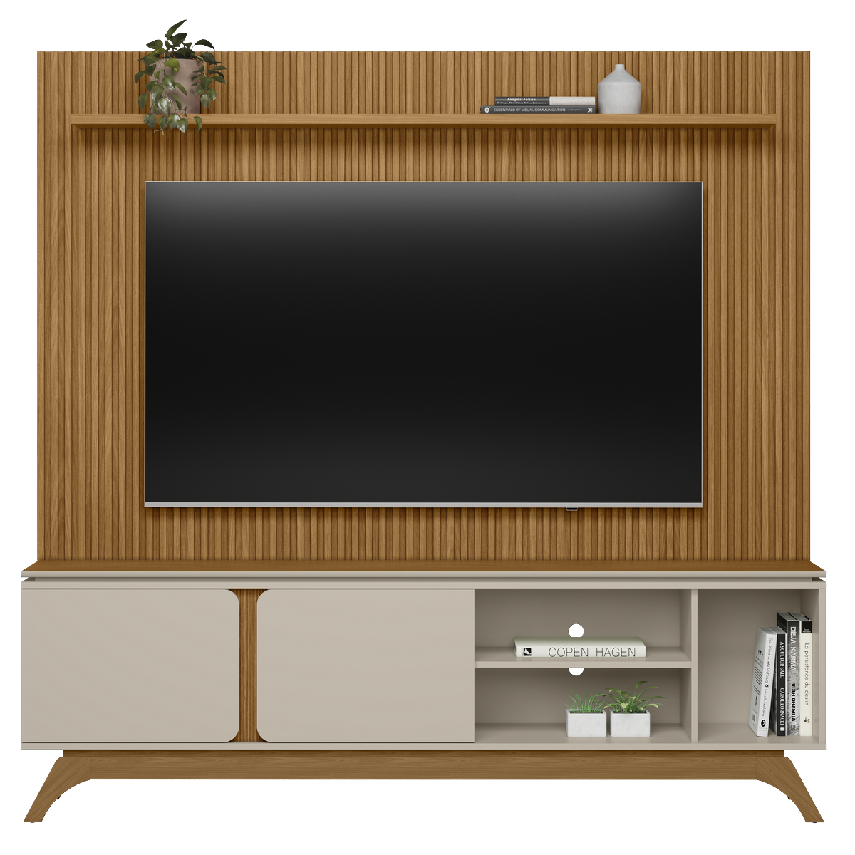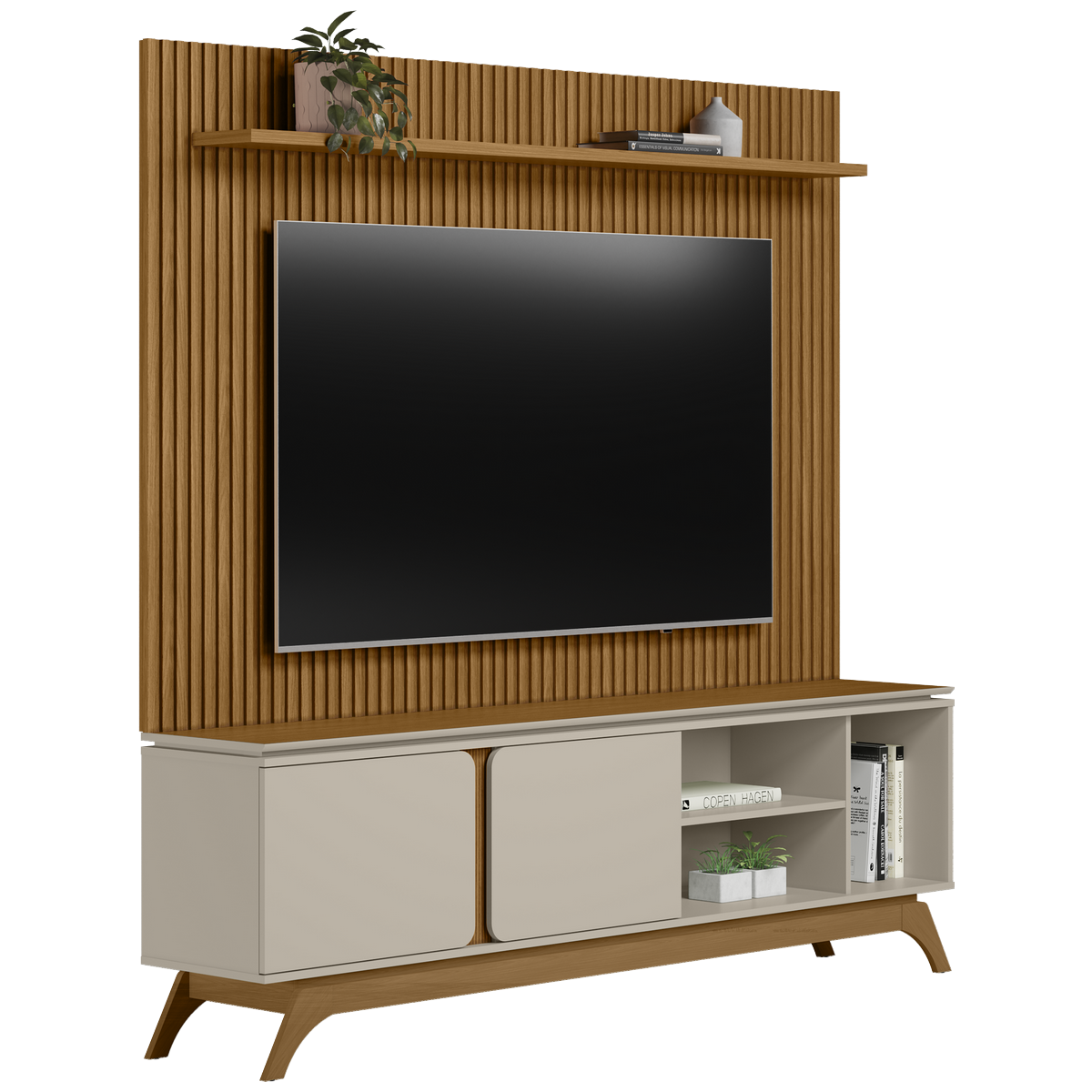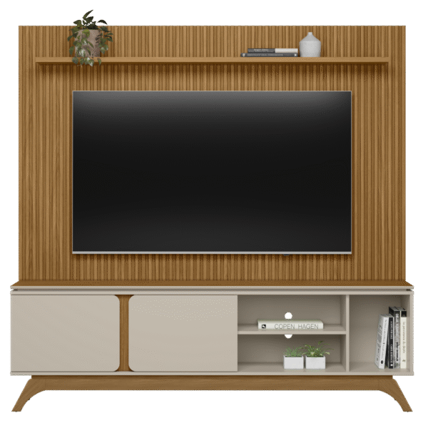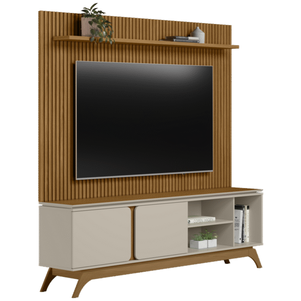 Painel até 75″ Gênova 2.0 Nature + Rack Istambul Nature/Off White – LINEA BRASIL