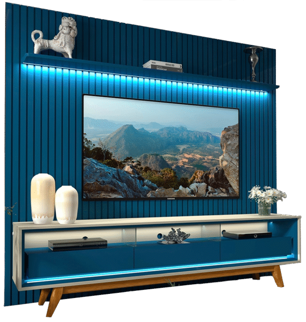 Painel até 85″ Nobre 230 Azul + Rack Requinte 212 Off White/Azul – GELIUS
