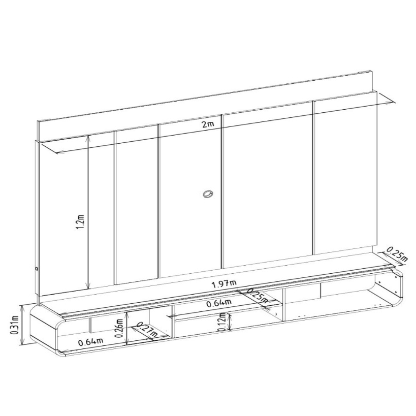 – Espaço para TV: 120 cm x 200 cm (AxL)