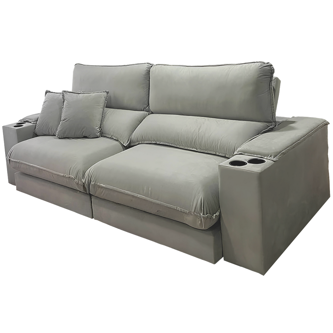 Sofá Retrátil e Reclinável Apogeu 2,30 m Veludo Prata 107 – ZARAT ESTOFADOS