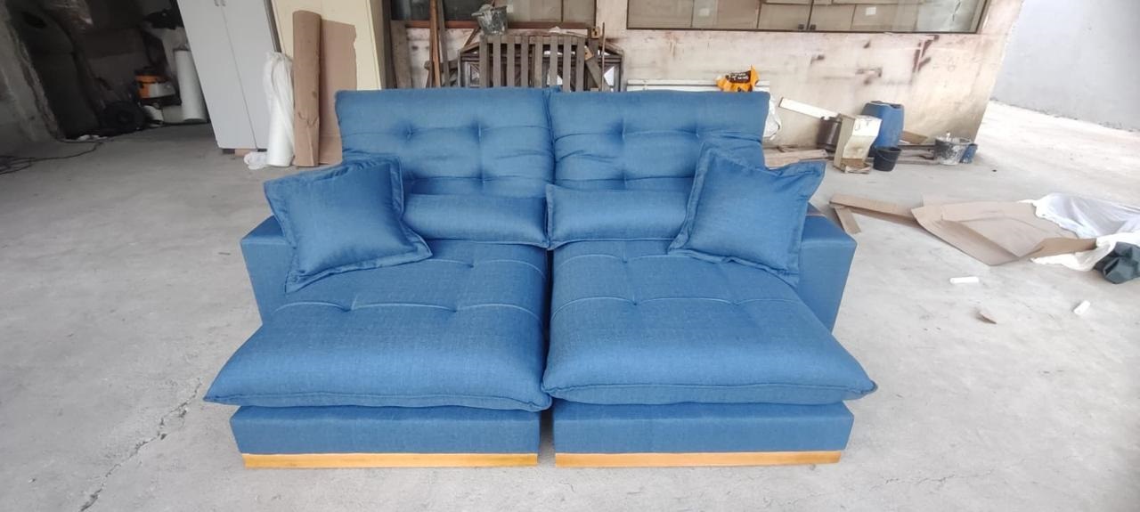 Sofá Retrátil e Reclinável Arthur 2,50 m Linho Azul 2009 – D’VITRINE ESTOFADOS