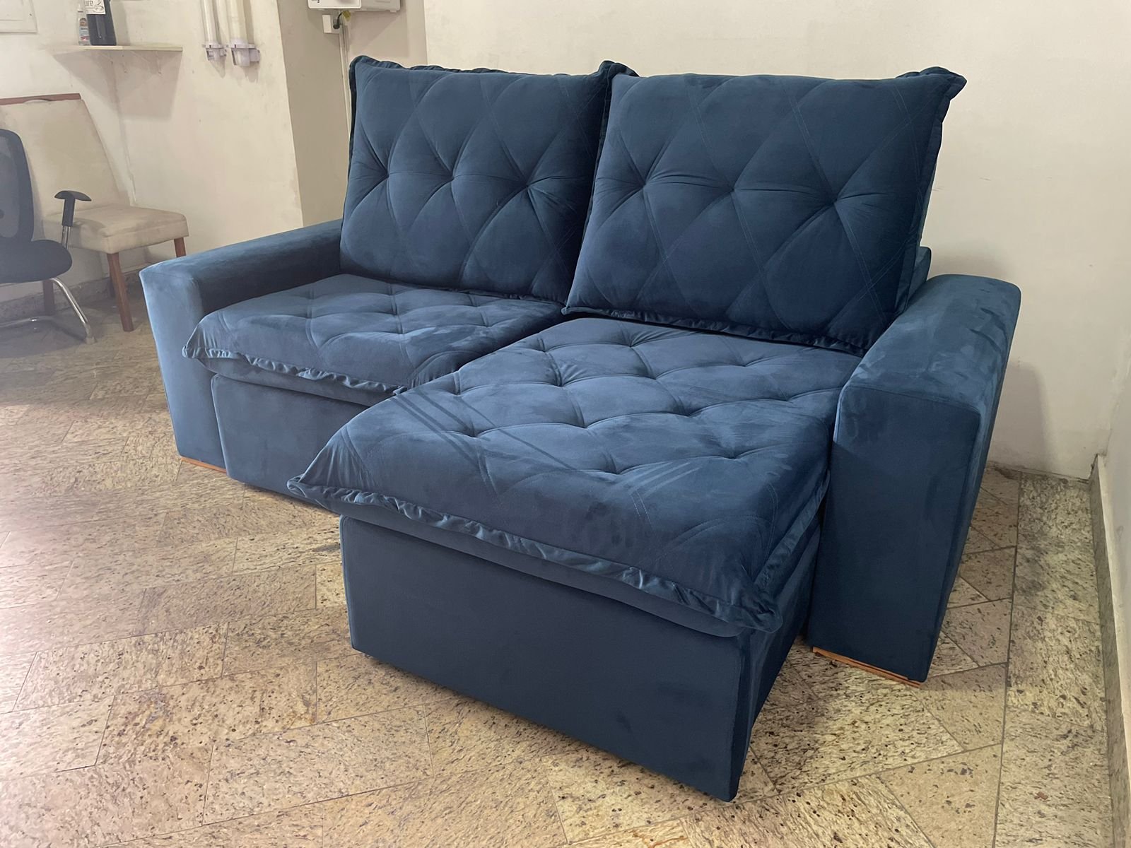 Sofá Retrátil e Reclinável Grécia 2,70 m Azul – QUINE ESTOFADOS
