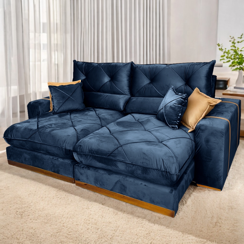 Sofá Retrátil e Reclinável Gran Bello 2,50 m Veludo Azul – IMPÉRIO DECOR