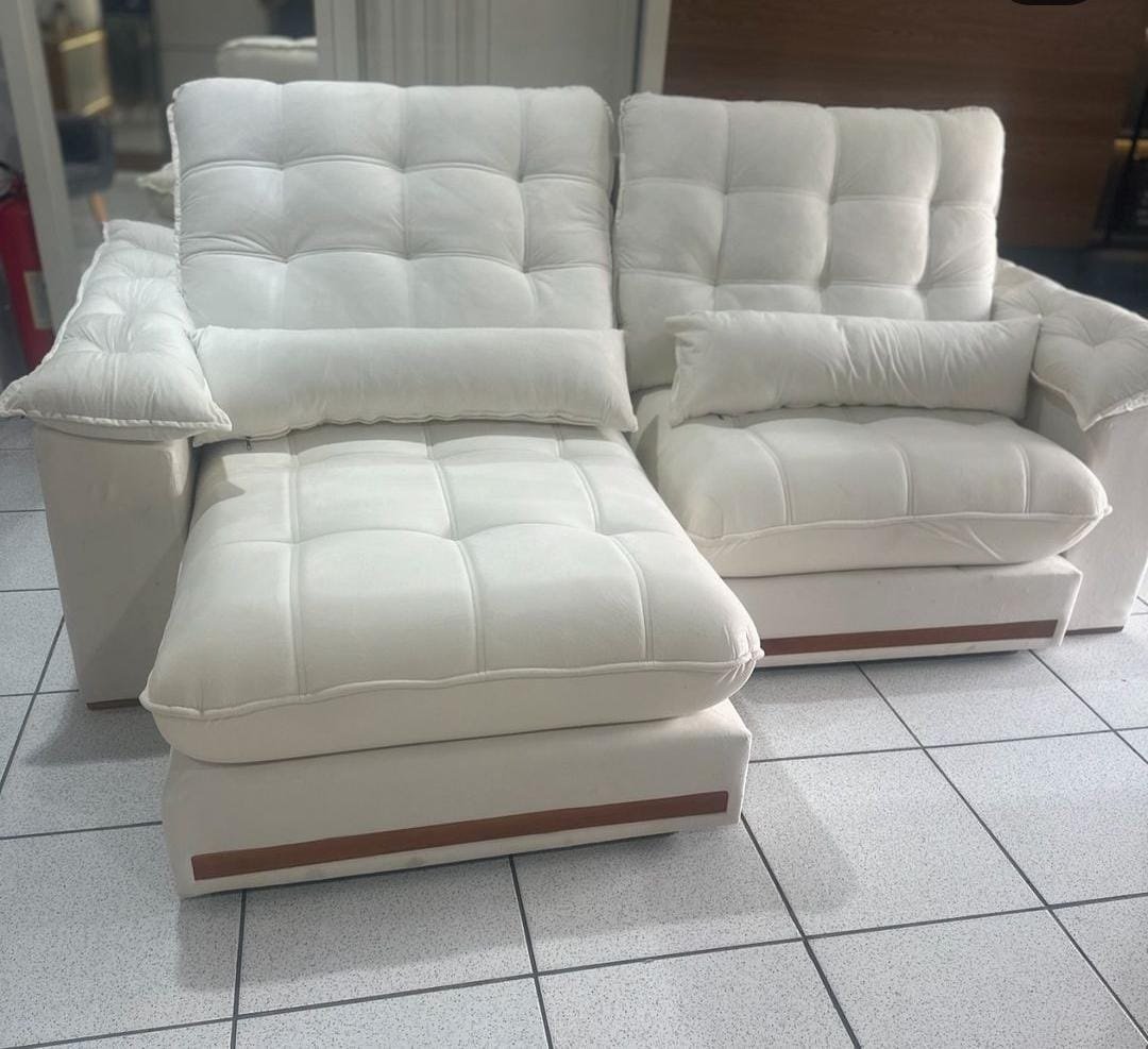 Sofá Retrátil e Reclinável Hércules 2,50 m Veludo Marfim – VICAM ESTOFADOS