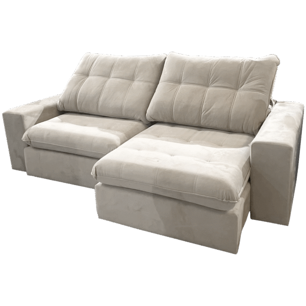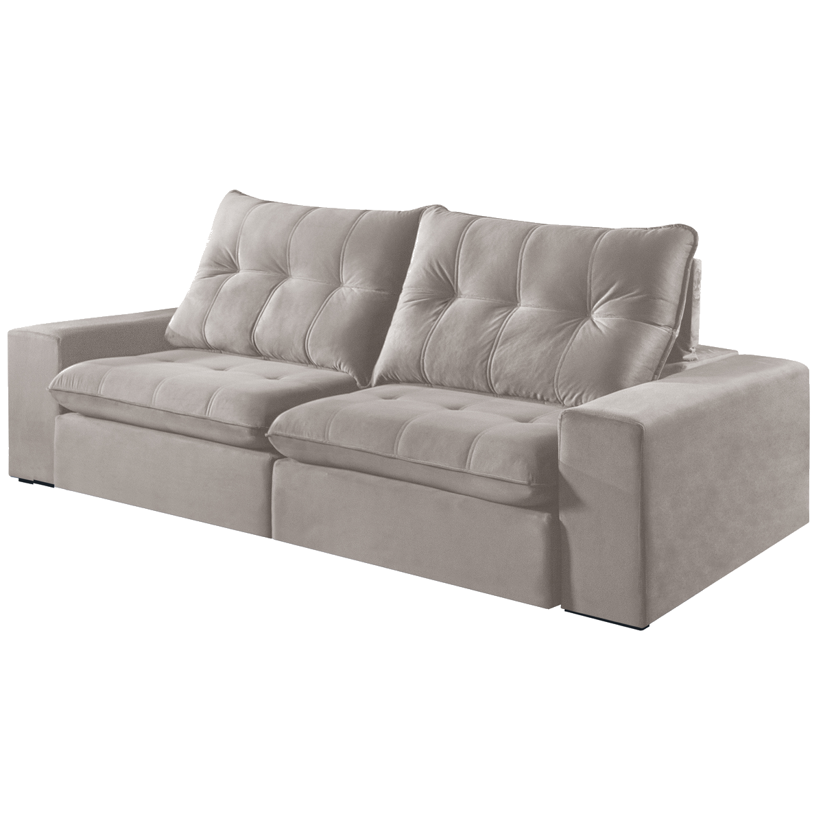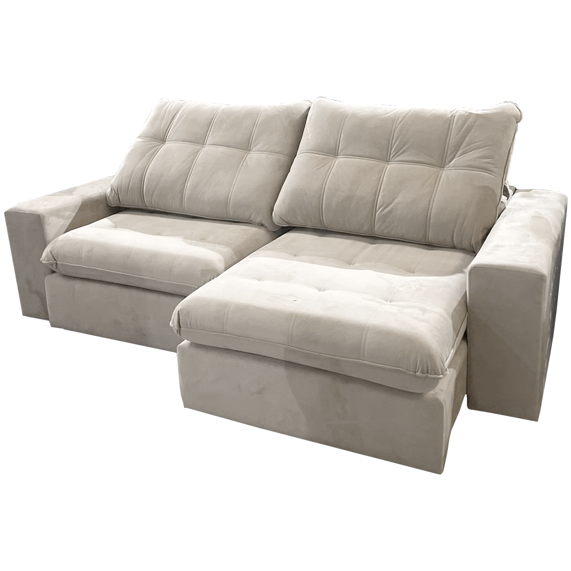Sofá Retrátil e Reclinável Niterói 2,50 m Veludo Bege – SINGULAR ESTOFADOS