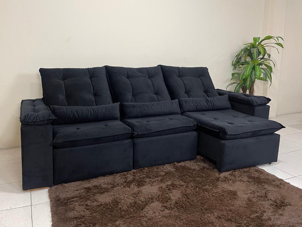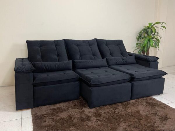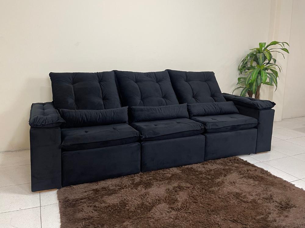 Sofá Retrátil Reclinável Atenas 2.70m – Preto Veludo