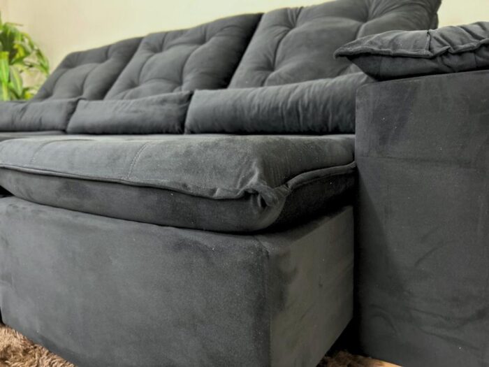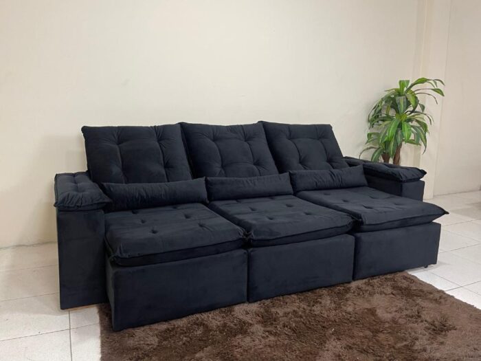Sofá Retrátil Reclinável Atenas 2.70m – Preto Veludo